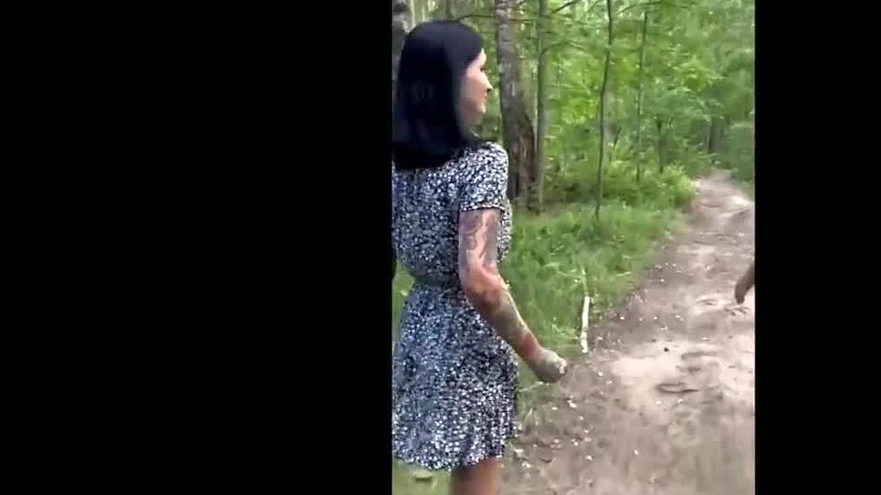 beautiful married woman having sex outdoors with clothes ripped, cum in mouth, live
