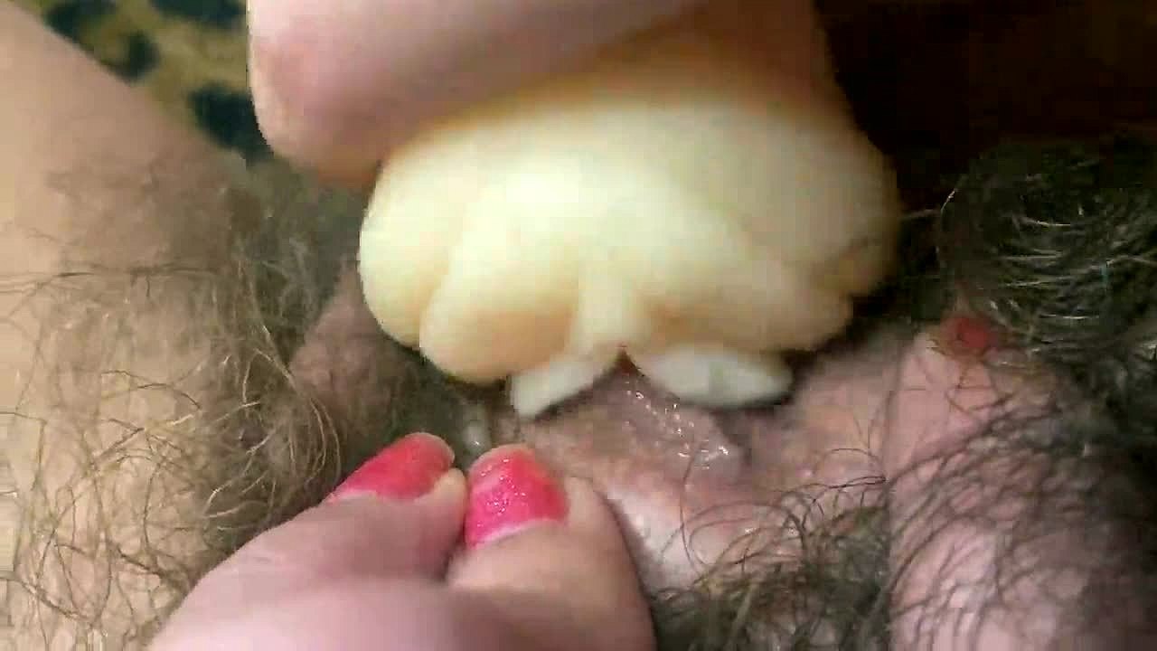 Wow, check out this hairy cunt with huge clit rubbing solo!