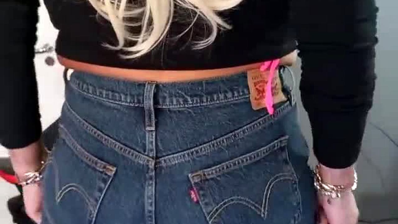 A fitness beauty in white shorts without underwear gets into an accident in the closet.