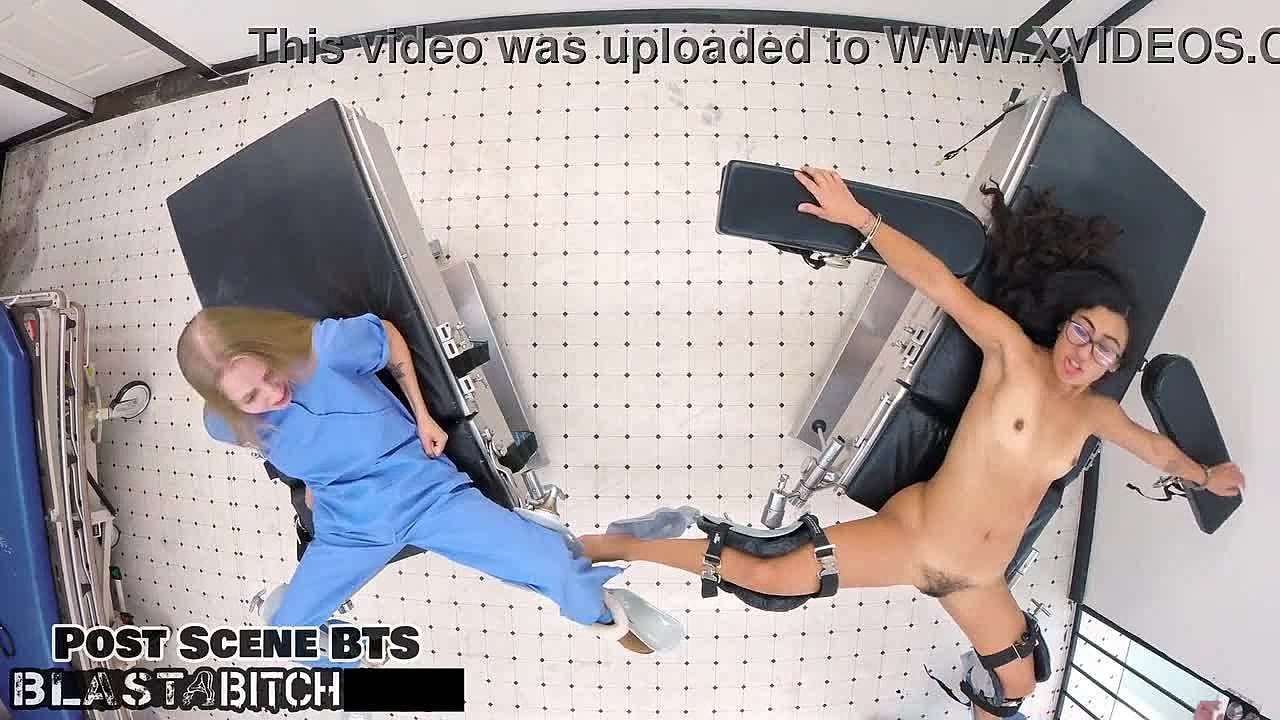 Jasmine Rose's thigh blasted with cum in femdom nurse scene at hospital with choking and spanking.