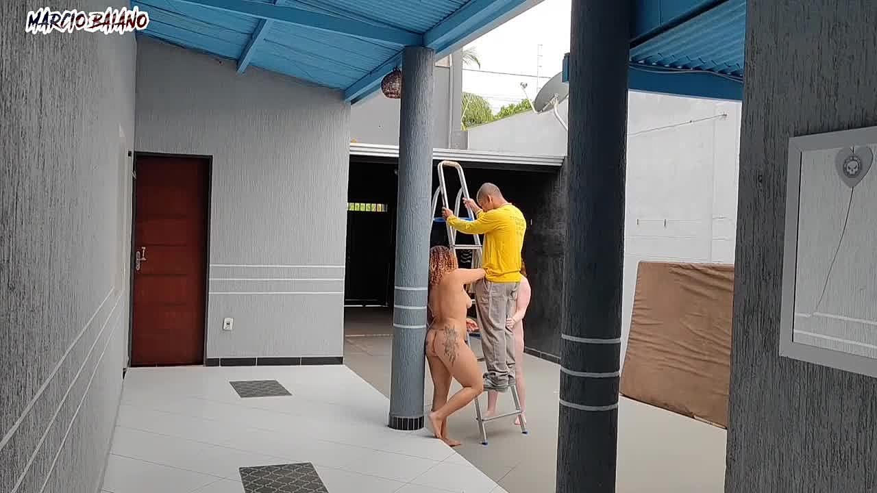 We're welcoming the visitor completely naked, ready for some hot bisexual action with that big black cock in the garage