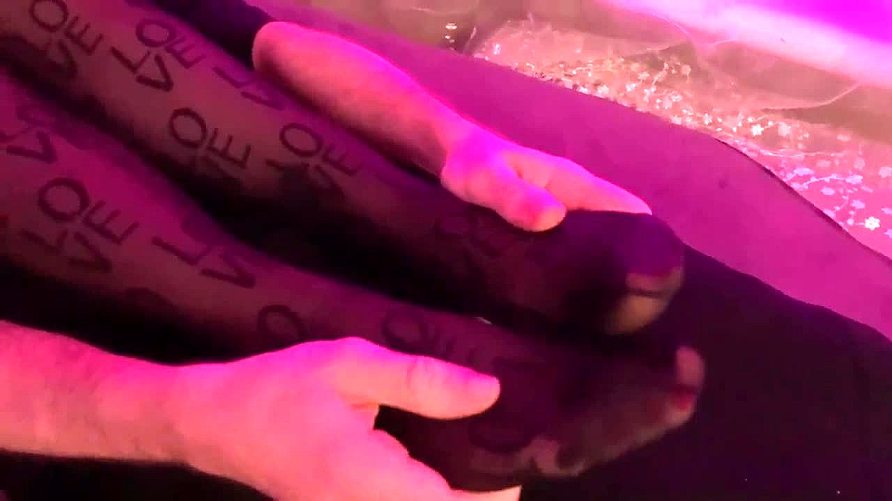 mistress teases with hot footjob in nude nylon stockings