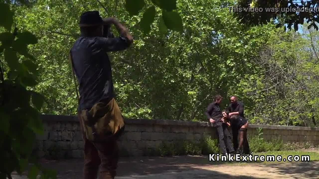 Stranded bigass teen 18+ bound and dominated in rough public outdoor play