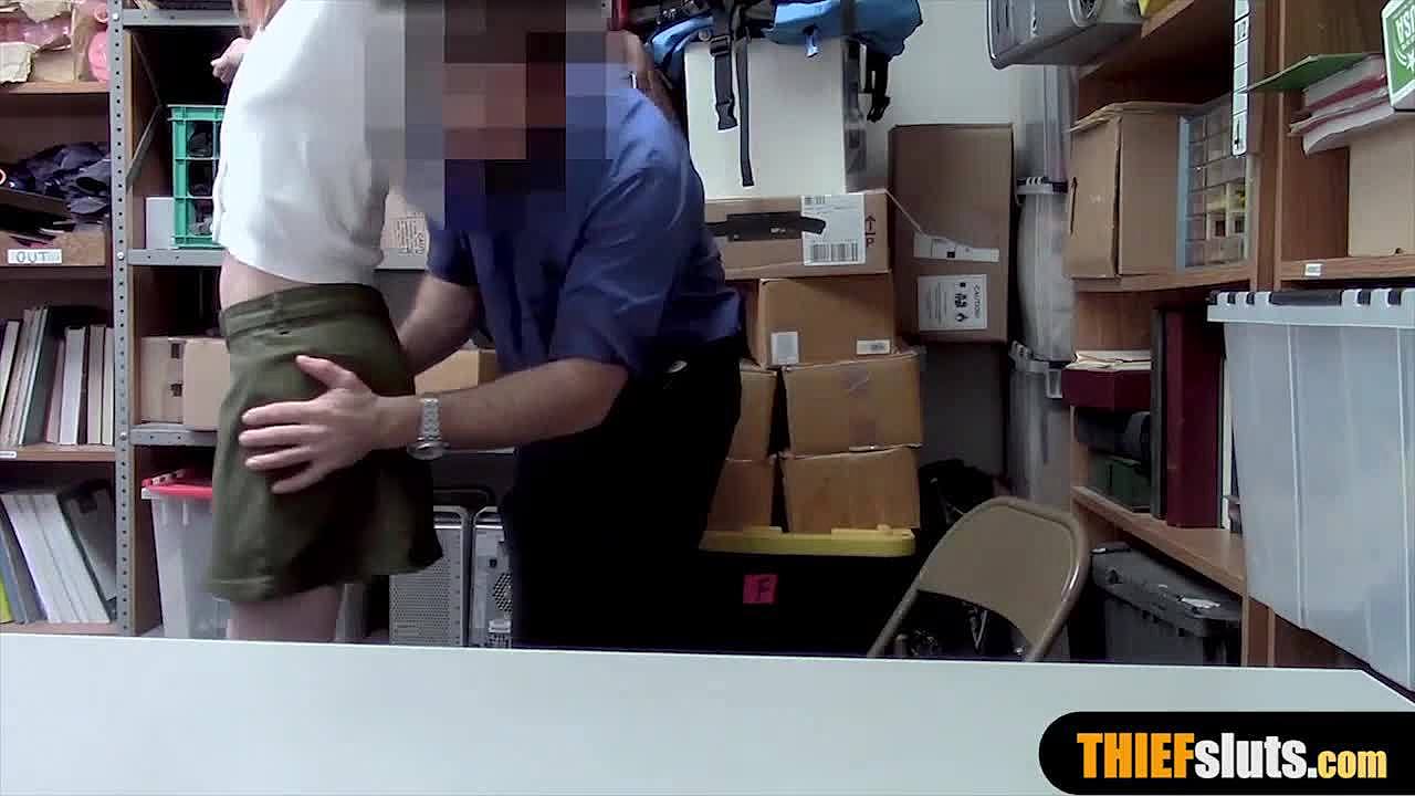 Raw redhead teen 18+ shoplifter caught in garage punished with rough doggystyle blowjob bent over small tits